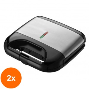 Sandwich maker cu plita anti-aderenta si termostat ce permite controlul temperaturii. Dispune de 2 leduri ce indica "Pornit/Oprit" si "Gatit controlat", are un design elegant, maner practic si protectie impotriva supraincalzirii. Sandwich maker-ul are placile placate cu teflon, tip grill . Specificatii: Lungimea cablului de alimentare este de 80 cm. Capacitate: 2 sandwich-uri. Greutatea produsului este de 1.200 kg. Dimensiuni: 22 x 21 x 8 cm. Alimentare: 220 V. Putere: 750 W. -Siguranta maxima datorita manerului izolat termic si sistemului de blocare; -Usor de curatat datorita suprafetelor anti-aderente; -Incalzire controlata prin termostat. Sistem usor de blocare prin apasare. Nu trebuie decat sa impingeti in jos pentru a inchide si bloca in siguranta aparatul de sandvisuri. Invelisul special anti-aderent face curatarea mai usoara. Depozitare compacta, cu economie de spatiu.