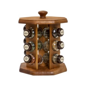 Suport din Lemn si 12 Sticle cu Condimente