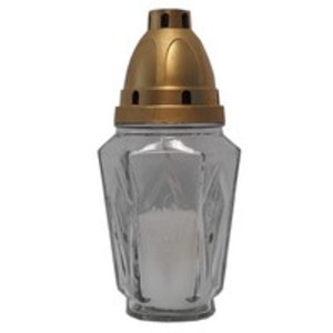 Candela din Sticla, Rosie, cu Cruce Argintie