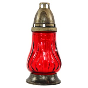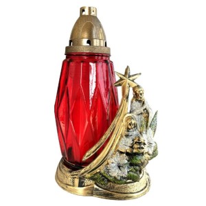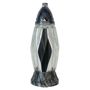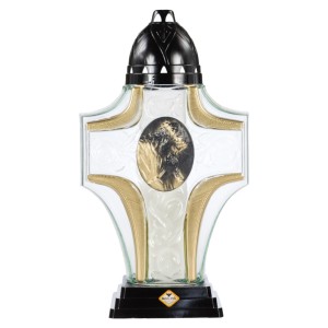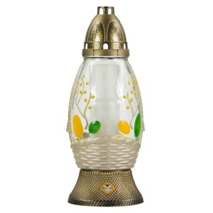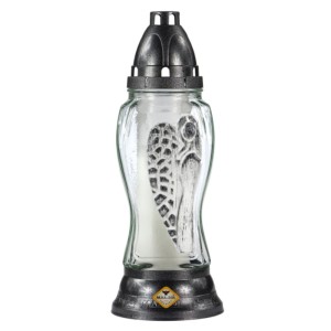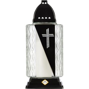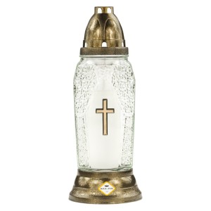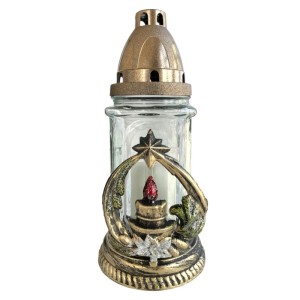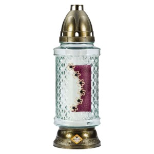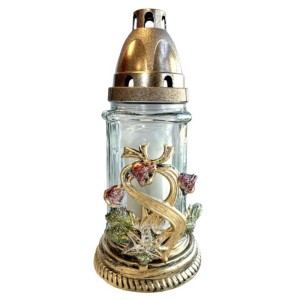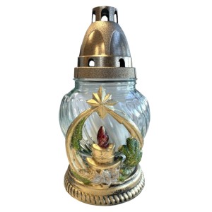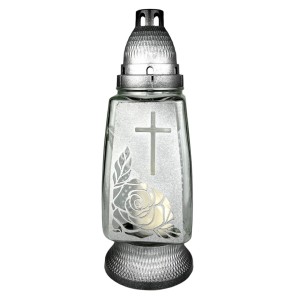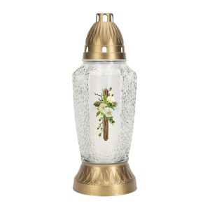 Candela din Sticla cu Flori si Cruce, 19 cm