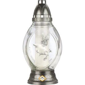 Candela din Sticla cu Porumbel, Argintie, 41 Ore