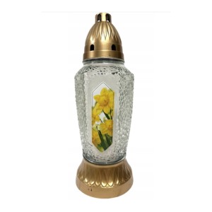 Candela din Sticla cu Flori, 30 cm