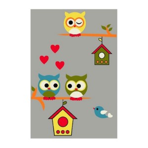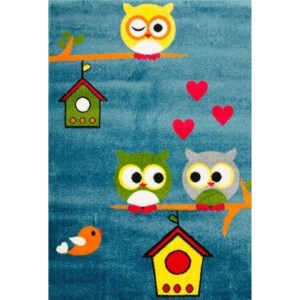 Covor pentru Copii, 80 cm x 150 cm, Gri, Model Kolibri Bufni...
