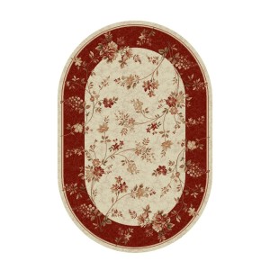 Covor Oval, 100 x 200 cm, Crem / Rosu, Model Flori Lotos
