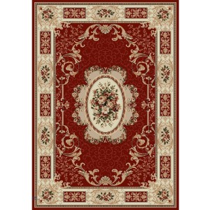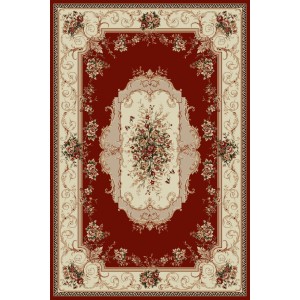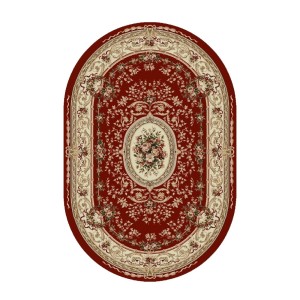 Covor Dreptunghiular, 80 x 150 cm, Crem / Rosu, Model Clasic...