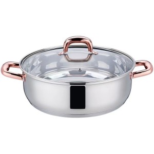 Cratita Joasa cu Capac, Rosie, din Fonta Emailata, 26 cm, 3.3 l, Grunberg Vasul din fonta emailata este idel pentru a gati o gama larga de mancaruri hranitoare si delicioase cu un efort minim, sunt caracterizate prin robustete si rezistenta. Vasele din fonta emailata sunt o alegere excelenta pentru bucatarie, deoarece nu necesita asezonare datorita stratului de email. Curatarea este simpla, fiind suficient sa folosesti apa calda si detergent. Micile umflaturi din interiorul capacului au fost concepute pentru a garanta obtinerea celei mai bune mancari posibile, scopul acestui design este de a crea un efect de ploaie in interiorul vasului, asigurand astfel o distributie uniforma a umiditatii si a condimentelor in timpul gatitului, pentru o obtine mancaruri cu arome bogate si intense. Caracteristici: Material: fonta emailata interior si exterior Dimensiuni: 34.60 x 26 x 7.70 (H 8.50) cm Diametru: 26 cm Grosime: 4 mm Greutate neta: 4.75 kg Capacitate: 3.30 l Cratita rotunda Culoare: interior -negru lucios cu puncte albe, exterior -grena lucios Curatare: Spalati cu detergent lichid neutru pentru spalat vase. Evitati sa folositi instrumente care pot cauza zgarieturi. Poate fi folosit atat pe flacara deschisa cat si pe aragaz.