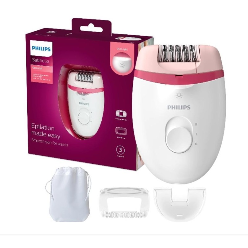 Epilator 2 Viteze, Alb/Mov, Philips Satinelle Essential BRE225/00 Sistemul eficient de epilare smulge firele de par de la radacina Sistemul eficient de epilare iti lasa pielea neteda si curata timp de mai multe saptamani. Lumina integrata pentru a vedea mai bine firele de par fine Cu lumina integrata vei rata mai putine fire de par si te vei bucura de o epilare mai eficienta. 2 setari de viteza pentru a prinde firele mai subtiri sau mai groase 2 setari de viteza pentru a indeparta firele de par mai subtiri si mai groase si a beneficia de un tratament mai personalizat de indepartare a parului. Maner profilat, ergonomic, pentru manevrare confortabila Forma rotunjita se potriveste perfect in mana ta si ajuta la indepartarea confortabila a parului. Cap de epilare lavabil pentru mai multa igiena si curatare usoara Acest epilator dispune de un cap de epilare lavabil. Capul poate fi detasat si curatat sub jet de apa, pentru o igiena mai buna. Capac pentru zone sensibile pentru indepartarea parului nedorit Pentru mai multa delicatete pe diferite zone ale corpului, include un cap pentru indepartarea firelor de par nedorite din zona axiala si cea inghinala. Include accesoriu pentru masaj Accesoriul pentru masaj atenueaza senzatia de epilare. Husa de calatorie Husa de calatorie pentru depozitare si transport.