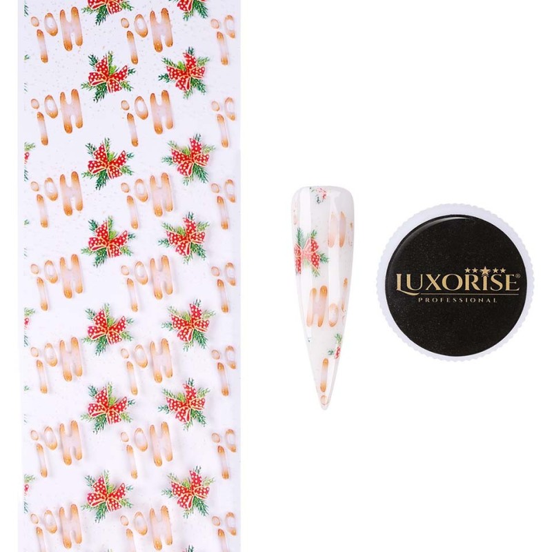 Folie de Transfer Unghii LUXORISE #358 Christmas Vibes sau false, cu gel sau acryl. Imprimeul festiv care va ramane pe unghii in urma utilizarii foliei de transfer va fi in ton cu perioada sarbatorilor.