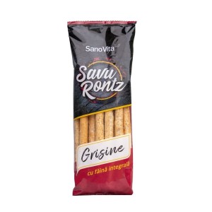 Grisine cu Susan din Faina Integrala de Grau, Sanovita, 50 g Cu aproximativ 60% faina integrala, pastreaza o mare parte dintre beneficiile nutritionale ale bobului de grau (fibre, proteine si vitamine din complexul B), iar prin adaosul de susan aduc un plus de calciu, magneziu si grasimi sanatoase. Reprezinta o alegere potrivita pentru zilele aglomerate, putand fi consumate alaturi de paste tartinabile, feluri principale sau ca o gustare care sa satisfaca nevoia de energie si reechilibrare glicemica.