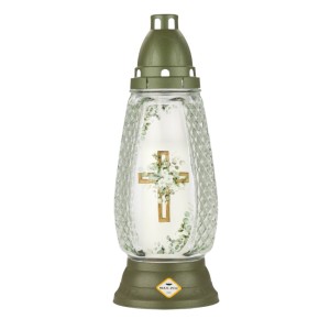 Candela din Sticla cu Cruce si Flori, Aurie, 41 Ore
