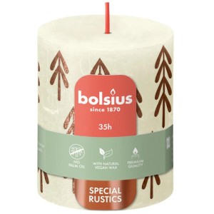 Lumanare Stalp Rustic cu Print, 80 x 68 mm, Alb Perlat, Bols...
