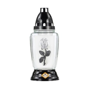 Candela din Sticla Fumurie cu Cruce Argintie Max-Pol, 42 Ore