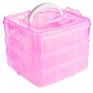 Cutie Compartimentata Depozitare Accesorii Unghii, Roz