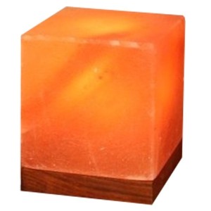 Lampa din Sare Himalaya Cub pe Suport de Lemn