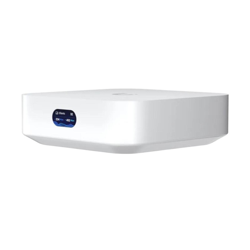 Cu toate ca are dimensiuni compacte (98 x 98 x 30 mm), UX este bogat in functionalitati. Dispune de doua porturi Gigabit Ethernet (WAN si LAN) si un radio Bluetooth incorporat pentru o integrare usoara prin aplicatia UniFi. Hotspot-ul Wi-Fi 6 ofera capacitati MIMO multi-utilizator 2x2. In plus, exista un indicator LCM convenabil pe panoul frontal care afiseaza informatii importante, precum debitul si numarul de dispozitive conectate.