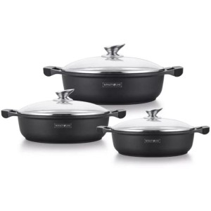 Tava Antiaderenta din Aluminiu, Strat Ceramic, Negru, 3 Pies...