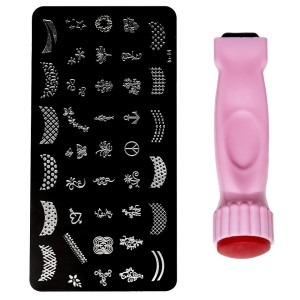 Set Stampila Unghii Roz + Matrita To-01