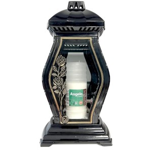 Felinar din Sticla, Model Trandafir, Negru, 72 Ore