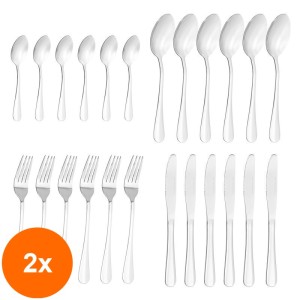 Piesele componente sunt fabricate din otel inoxidabil placat, care confera suprafetelor duritate, rezistenta si culori intense. Setul contine:6 x linguri;6 x furculite;6 x cutite;6 x lingurite;6 x furculite desert.Culoare: auriuUsor de curatat, manual sau se pot curata in masina de spalat vase.