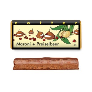 Ciocolata BIO cu Lapte, Castane si Merisoare, 70 g, Zotter